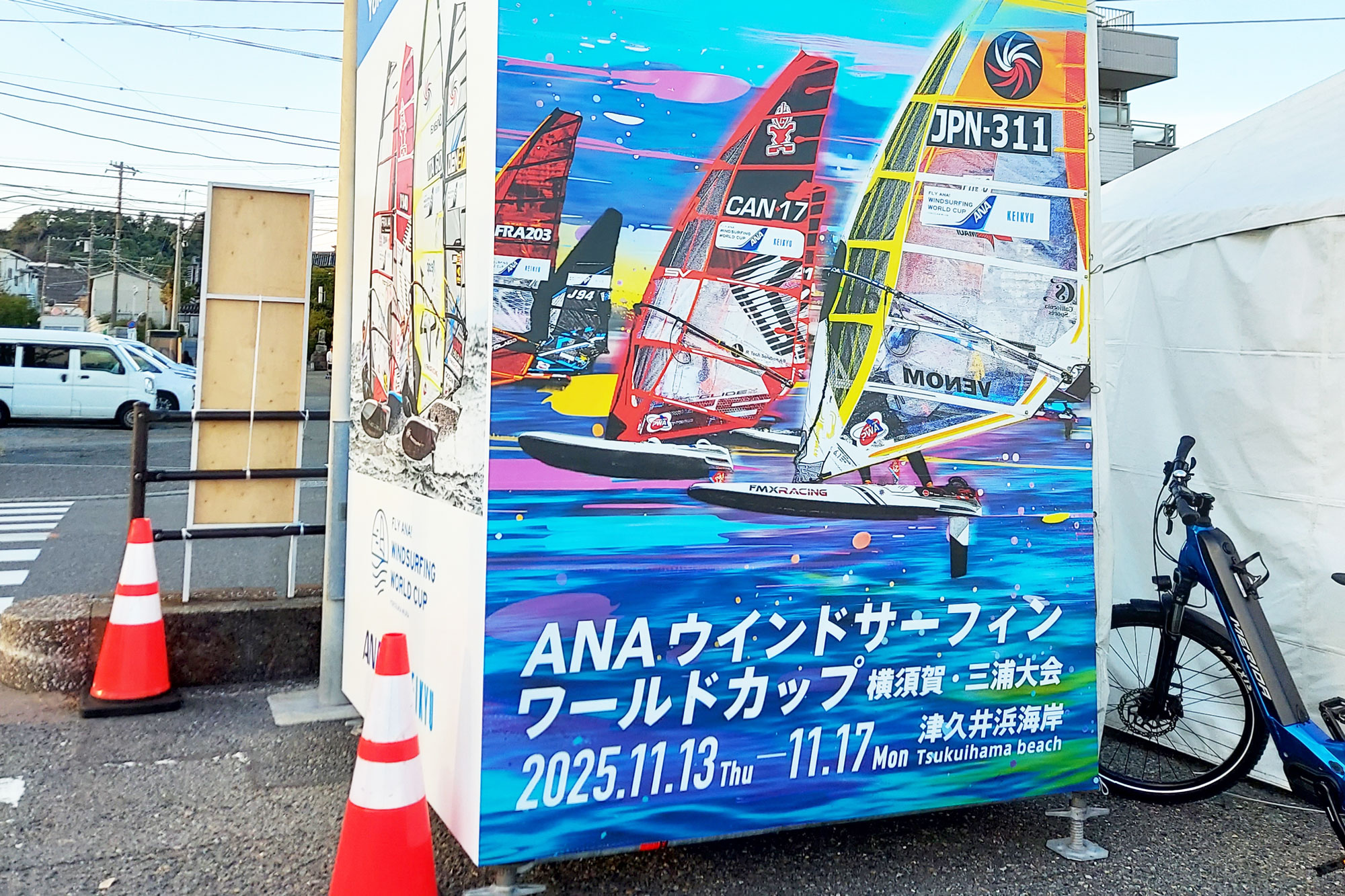 2025年11月13日(木曜)~17日(月曜)に、横須賀の津久井浜海岸で「ANAウインドサーフィンワールドカップ横須賀・三浦大会 2025 」が開催されました。
